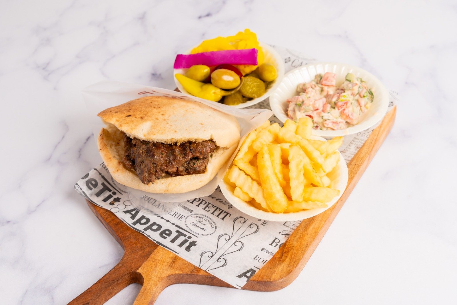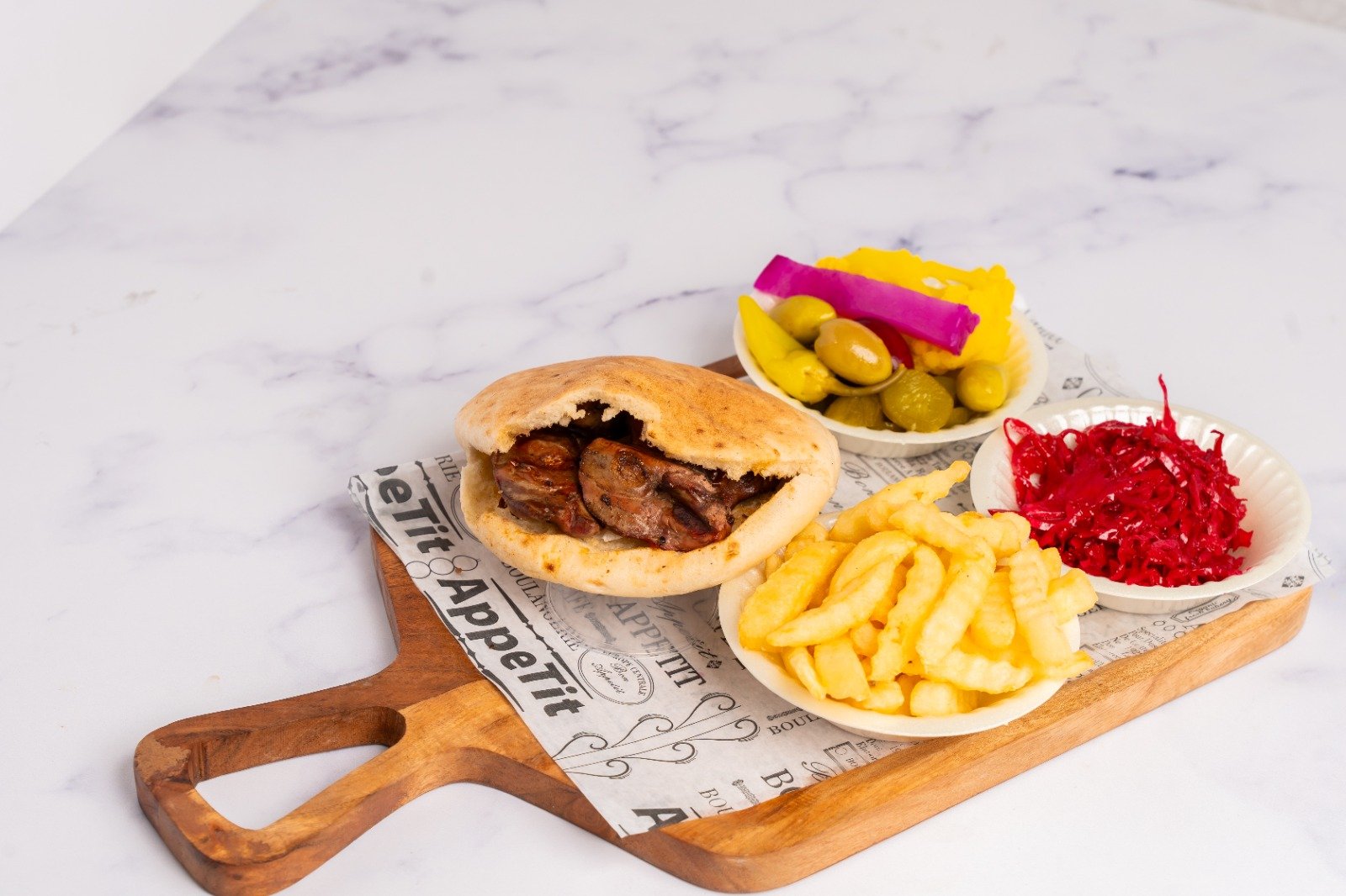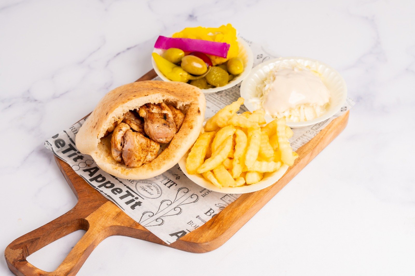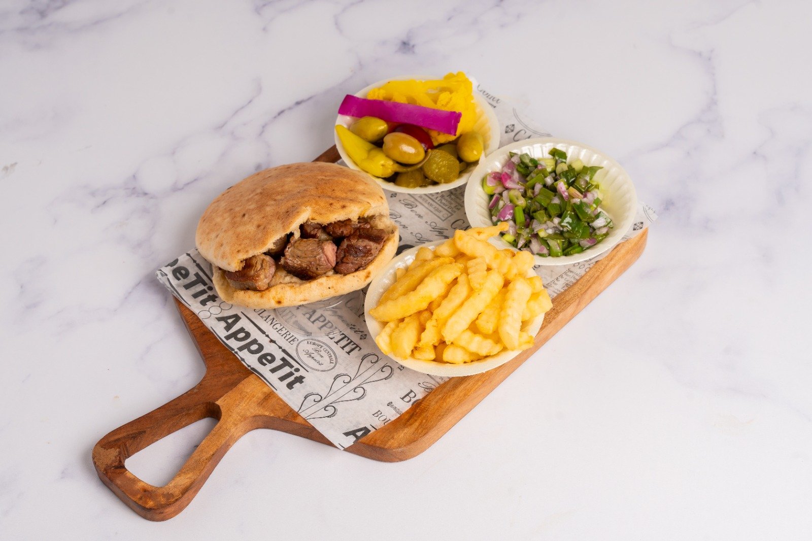 اختر سلطات: حمص ,طحينة, حريف, سلطة عربية بطحينة, ملفوف أبيض , ملفوف أحمر, بندورة حارة, سلطة عربية, بصل سماق, تيرس, مخلل , بصل اخضر.