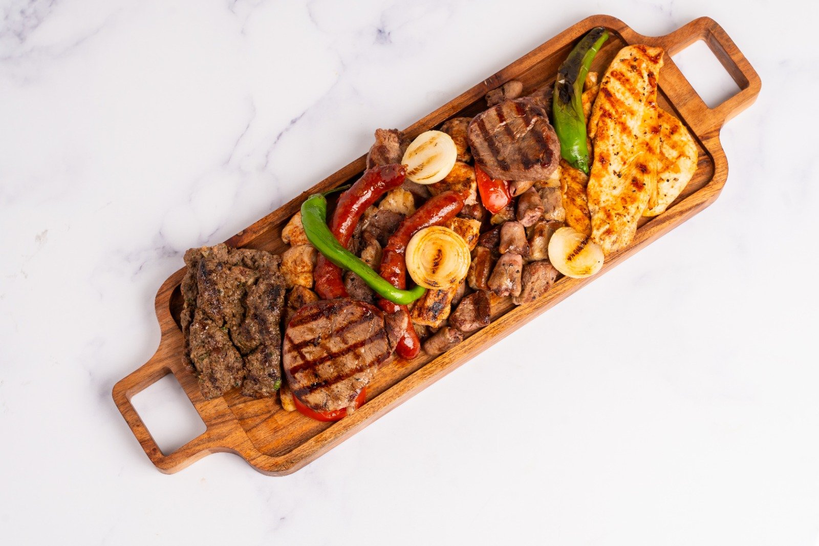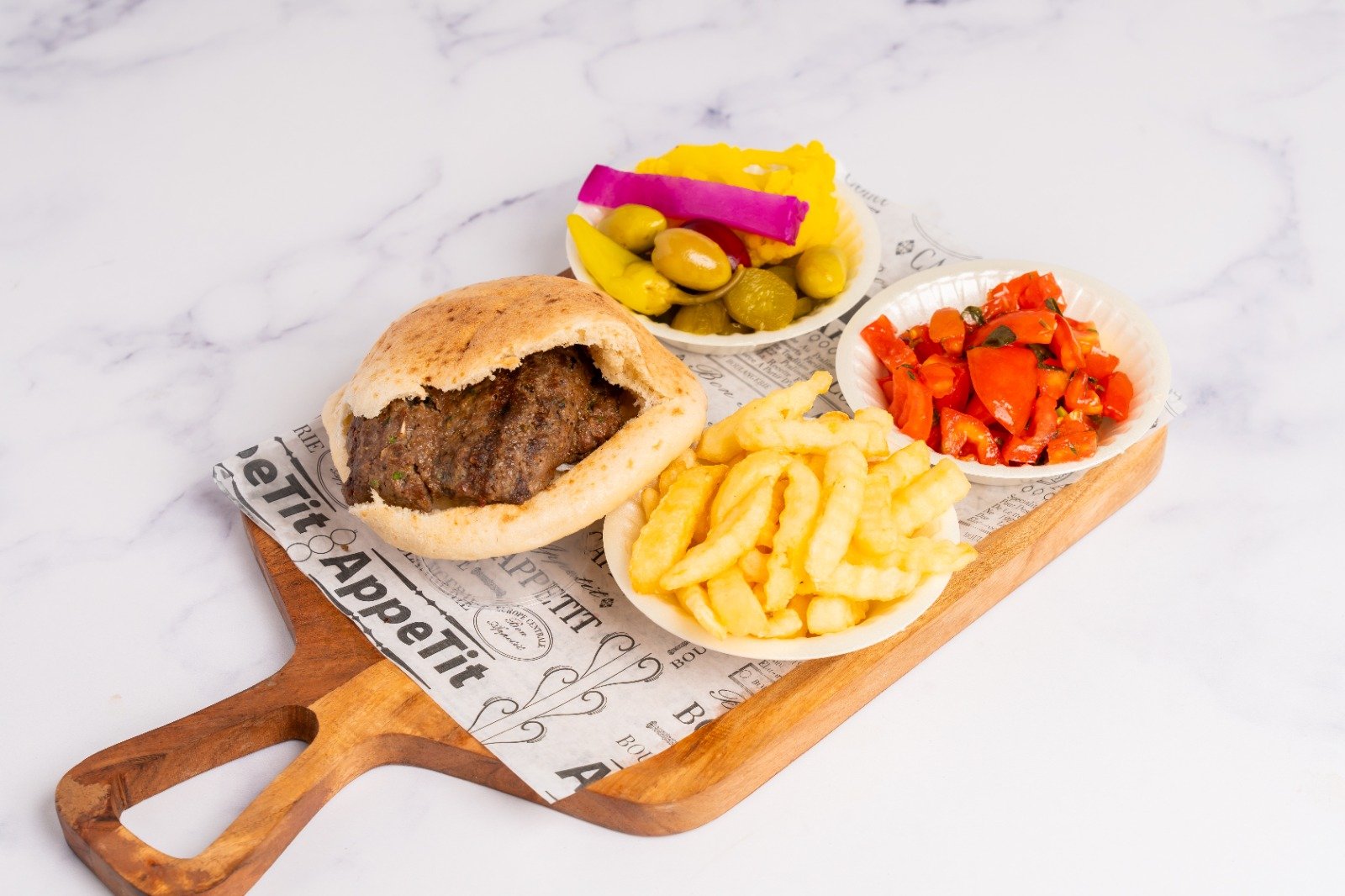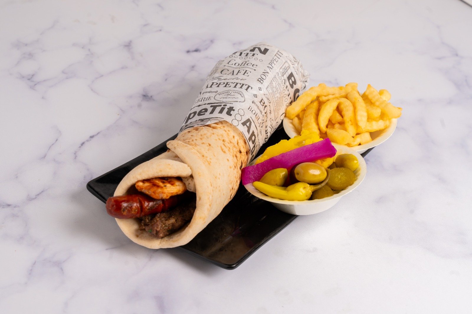 اختر سلطات: حمص ,طحينة, حريف, سلطة عربية بطحينة, ملفوف أبيض , ملفوف أحمر, بندورة حارة, سلطة عربية, بصل سماق, تيرس, مخلل , بصل اخضر.